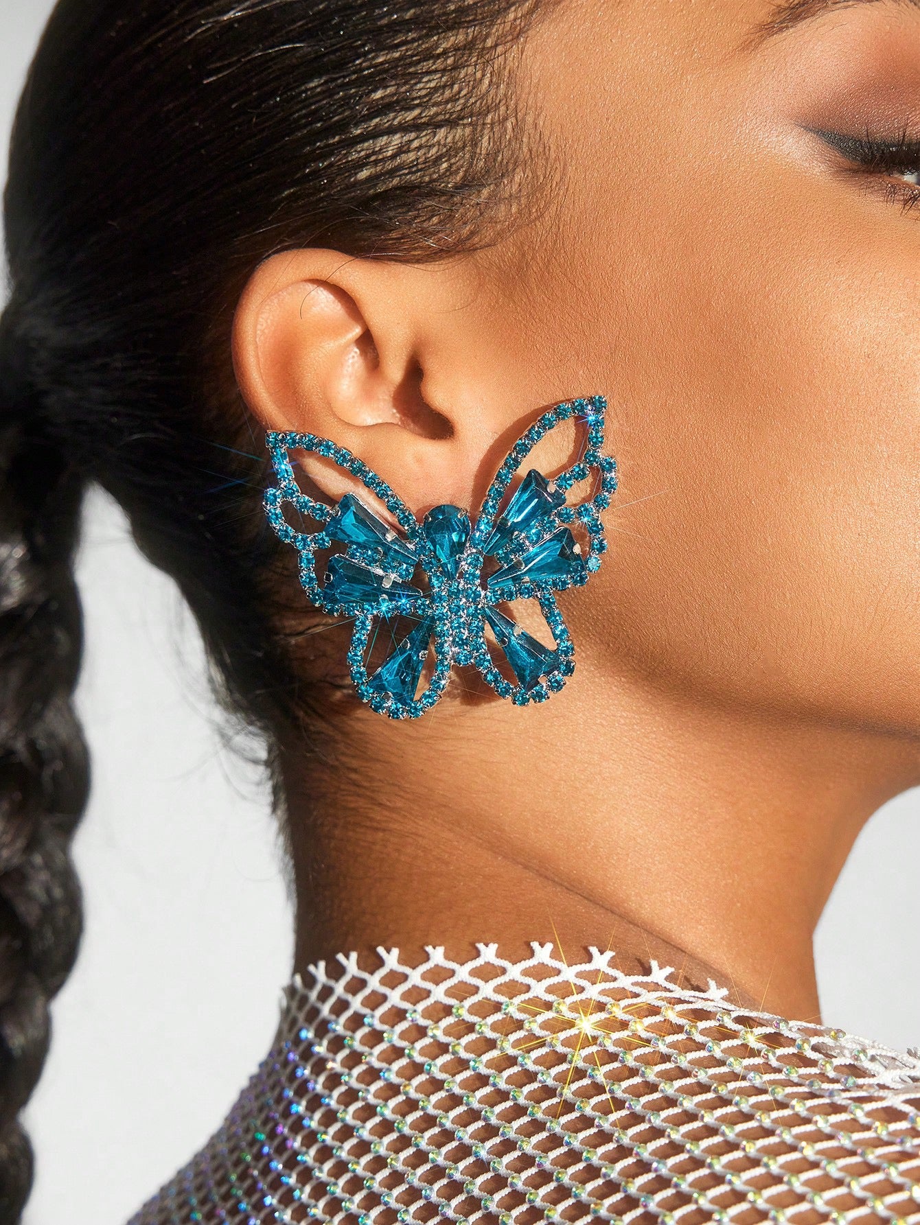 Butterfly shaped rhinestone earrings