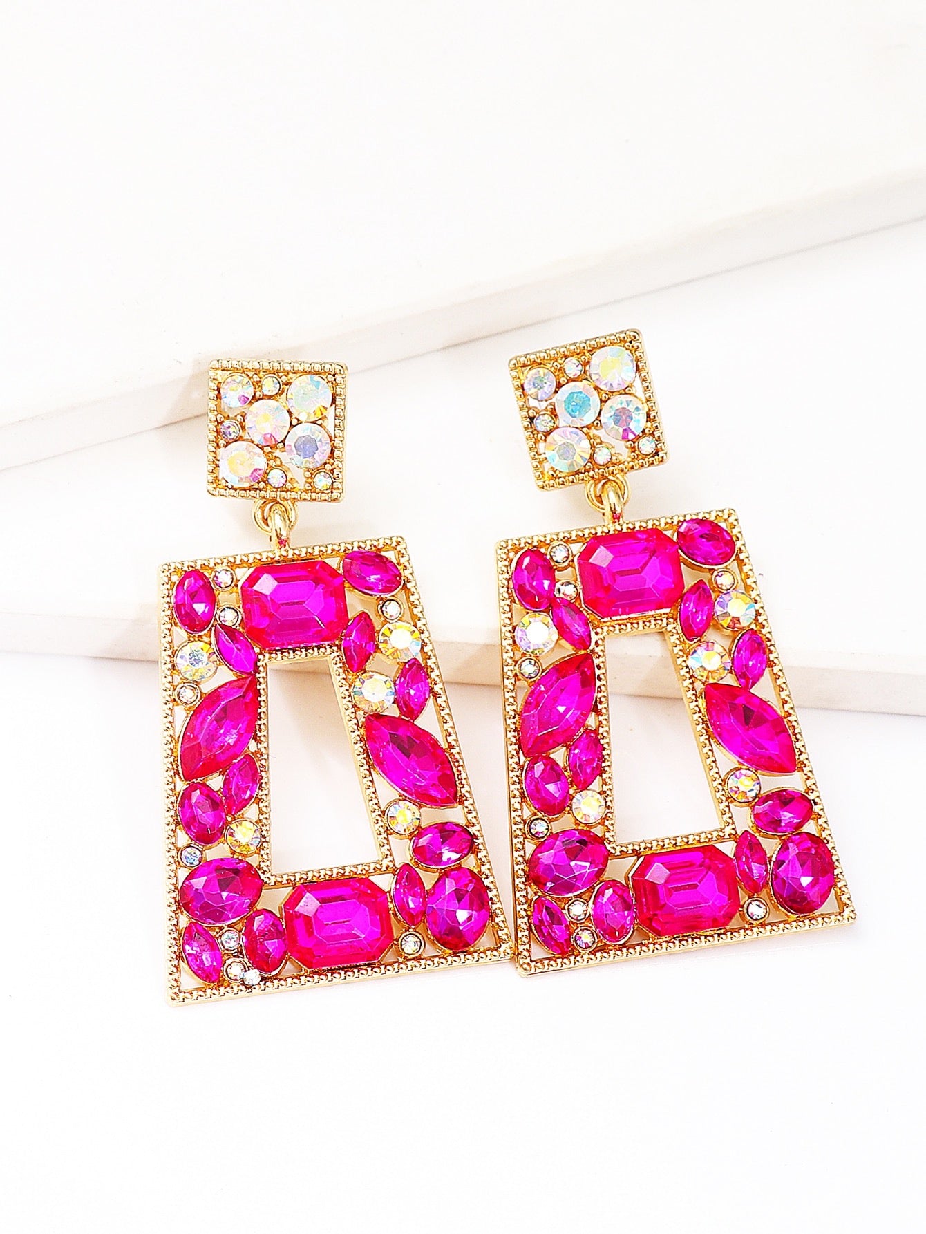 Geometric drop bling earrings