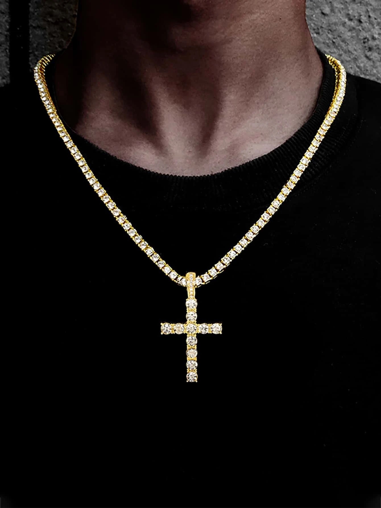Iced out cross pendant neck 4mm tennis chain